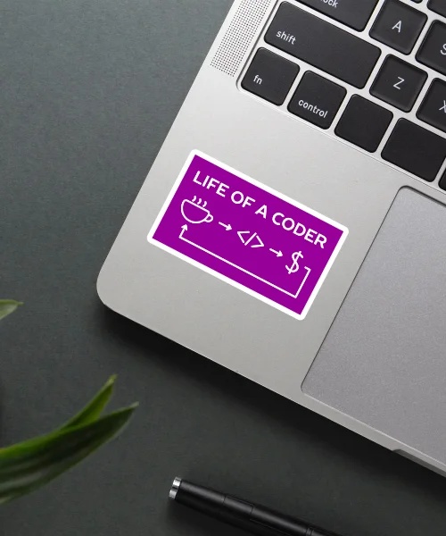 Life Of A Coder Sticker vinyl sticker, waterproof durable collectible sticker for laptop, phone, bottle, bike, notebook, helmet, and accessories.