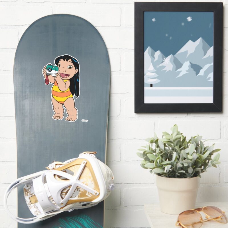 Lilo Stitch Lilo Taking A Photo Sticker vinyl sticker, waterproof durable collectible sticker for laptop, phone, bottle, bike, notebook, helmet, and accessories.