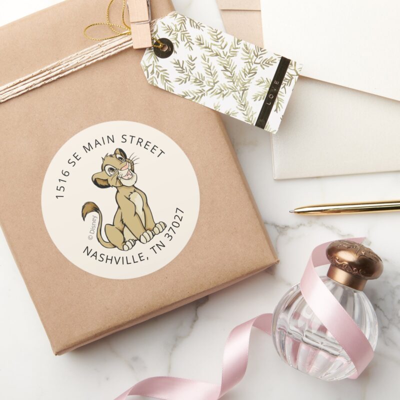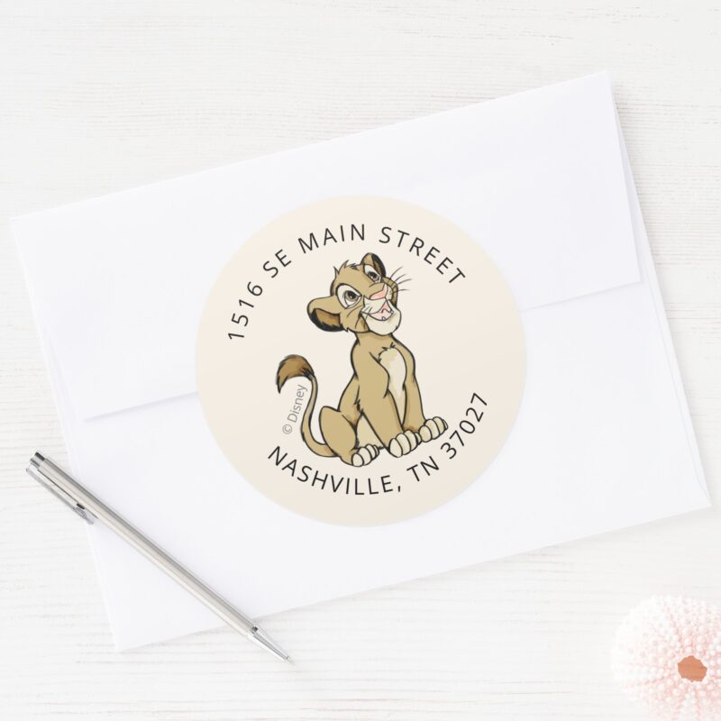 Lion King Simba Baby Shower Classic Round Sticker vinyl sticker, waterproof durable collectible sticker for laptop, phone, bottle, bike, notebook, helmet, and accessories.