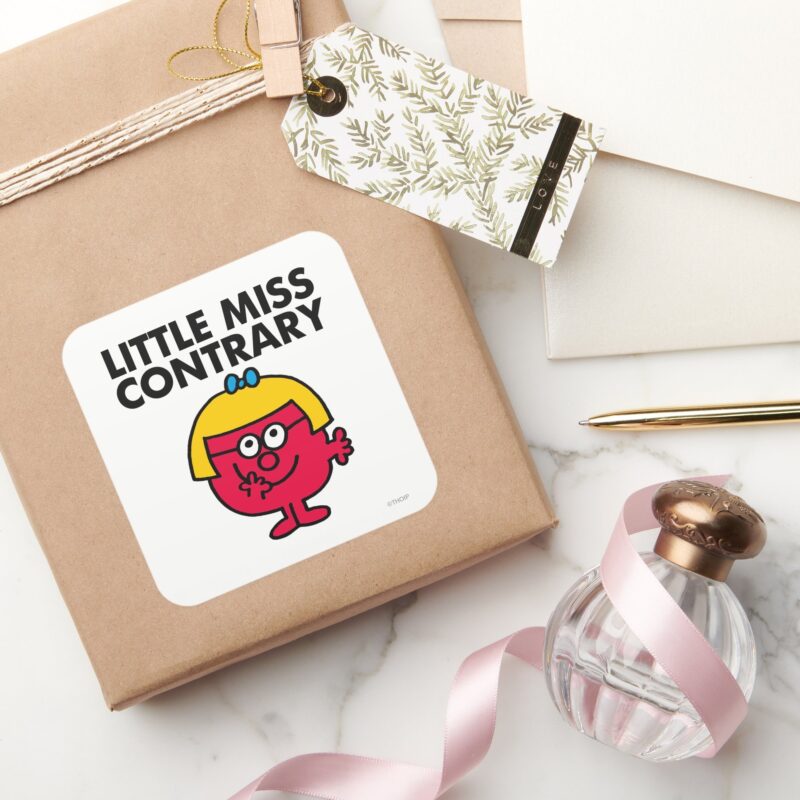 Little Miss Contrary Square Sticker vinyl sticker, waterproof durable collectible sticker for laptop, phone, bottle, bike, notebook, helmet, and accessories.
