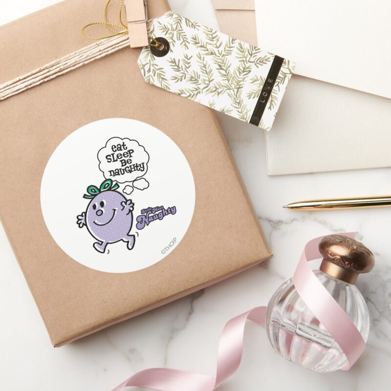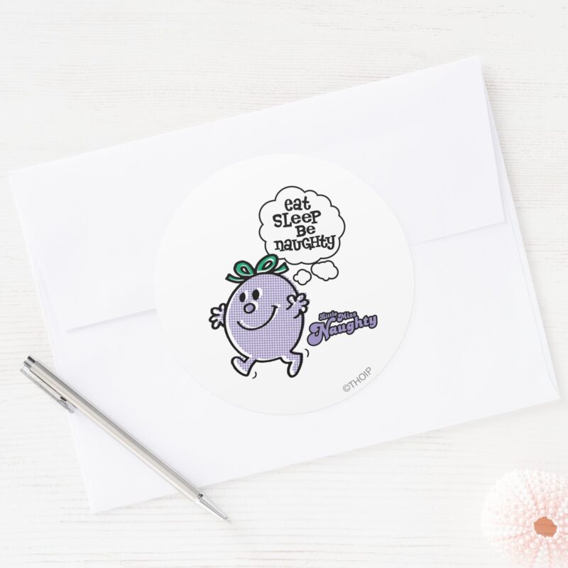 Little Miss Naughtys Three Step Plan Classic Round Sticker vinyl sticker, waterproof durable collectible sticker for laptop, phone, bottle, bike, notebook, helmet, and accessories.