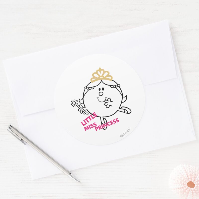 Little Miss Princess Pink Lettering Classic Round Sticker vinyl sticker, waterproof durable collectible sticker for laptop, phone, bottle, bike, notebook, helmet, and accessories.