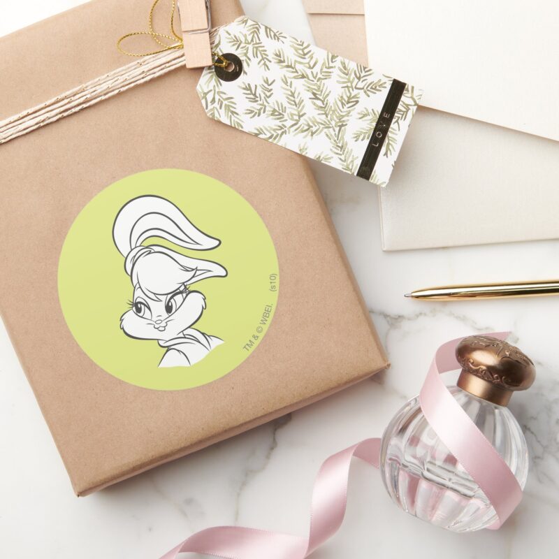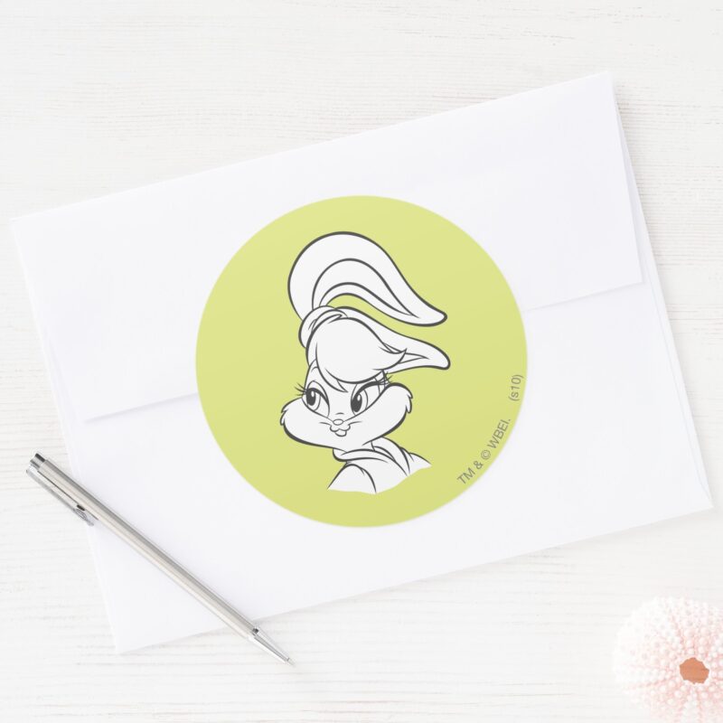 Lola Bunny Expressive Classic Round Sticker vinyl sticker, waterproof durable collectible sticker for laptop, phone, bottle, bike, notebook, helmet, and accessories.