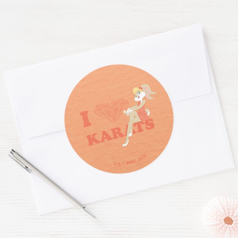 Lola Bunny I Heart Karats Classic Round Sticker vinyl sticker, waterproof durable collectible sticker for laptop, phone, bottle, bike, notebook, helmet, and accessories.