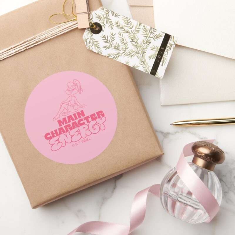 Lola Main Character Energy Classic Round Sticker vinyl sticker, waterproof durable collectible sticker for laptop, phone, bottle, bike, notebook, helmet, and accessories.