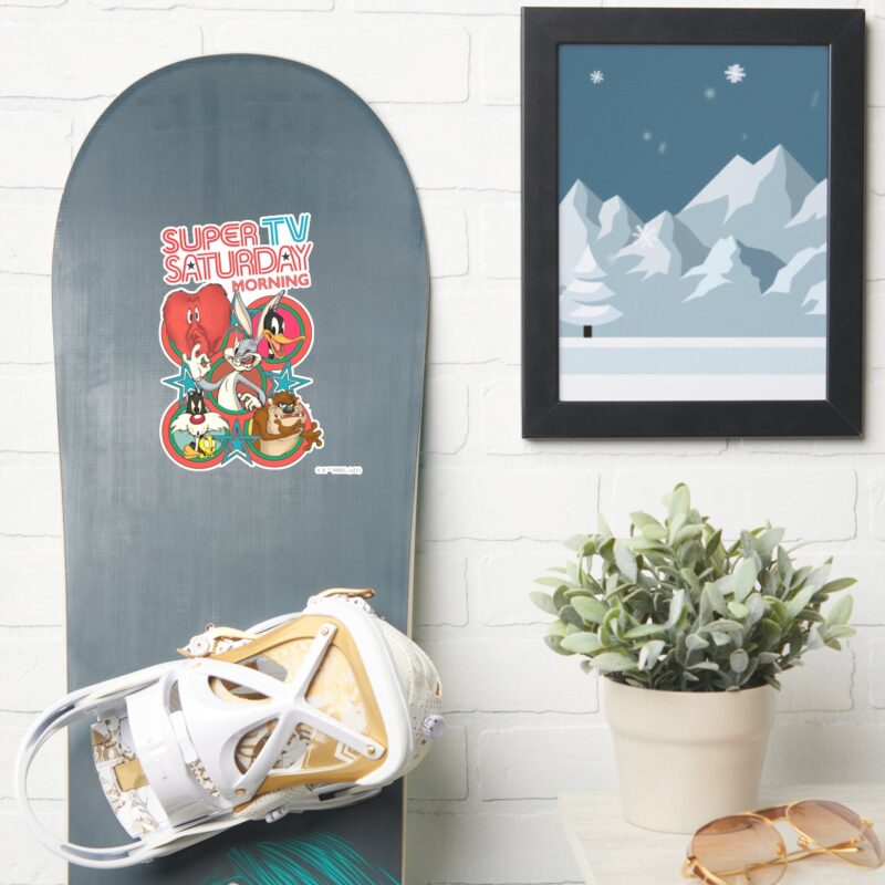 LOONEY TUNES™ Super TV Saturday Morning Sticker vinyl sticker, waterproof durable collectible sticker for laptop, phone, bottle, bike, notebook, helmet, and accessories.