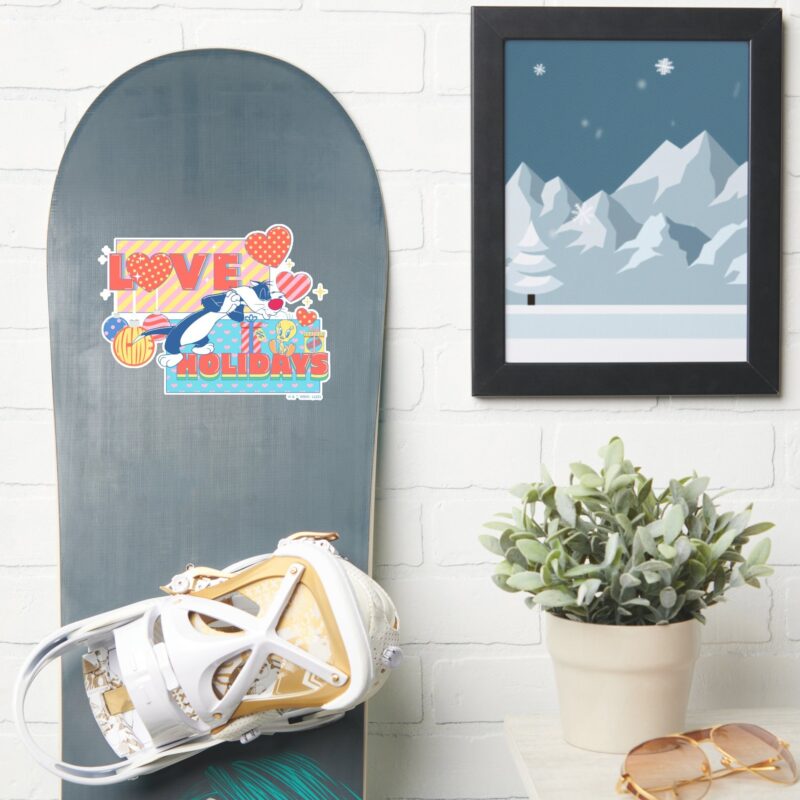 LOONEY TUNES™ SYLVESTER™ TWEETY™Love Holidays Sticker vinyl sticker, waterproof durable collectible sticker for laptop, phone, bottle, bike, notebook, helmet, and accessories.