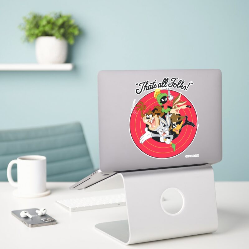 LOONEY TUNES™ THATS ALL FOLKS™ Bullseye Group Sticker vinyl sticker, waterproof durable collectible sticker for laptop, phone, bottle, bike, notebook, helmet, and accessories.