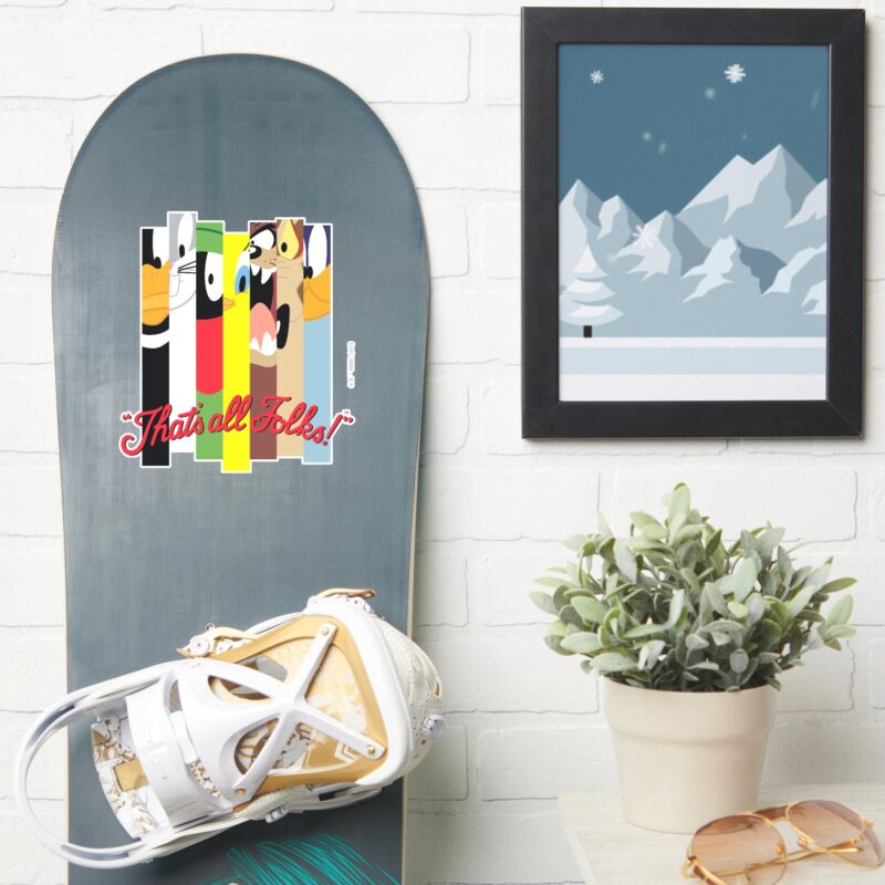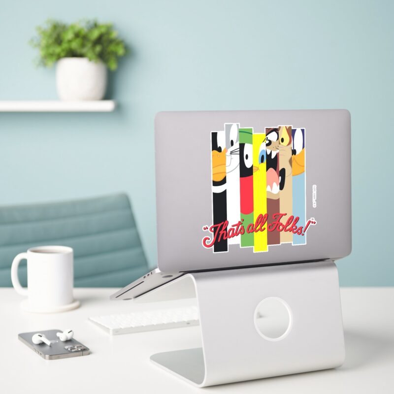 LOONEY TUNES™ THATS ALL FOLKS™ Sliced Characters Sticker vinyl sticker, waterproof durable collectible sticker for laptop, phone, bottle, bike, notebook, helmet, and accessories.