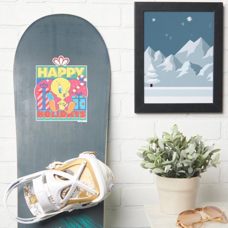 LOONEY TUNES™ TWEETY™ Happy Holidays Sticker vinyl sticker, waterproof durable collectible sticker for laptop, phone, bottle, bike, notebook, helmet, and accessories.