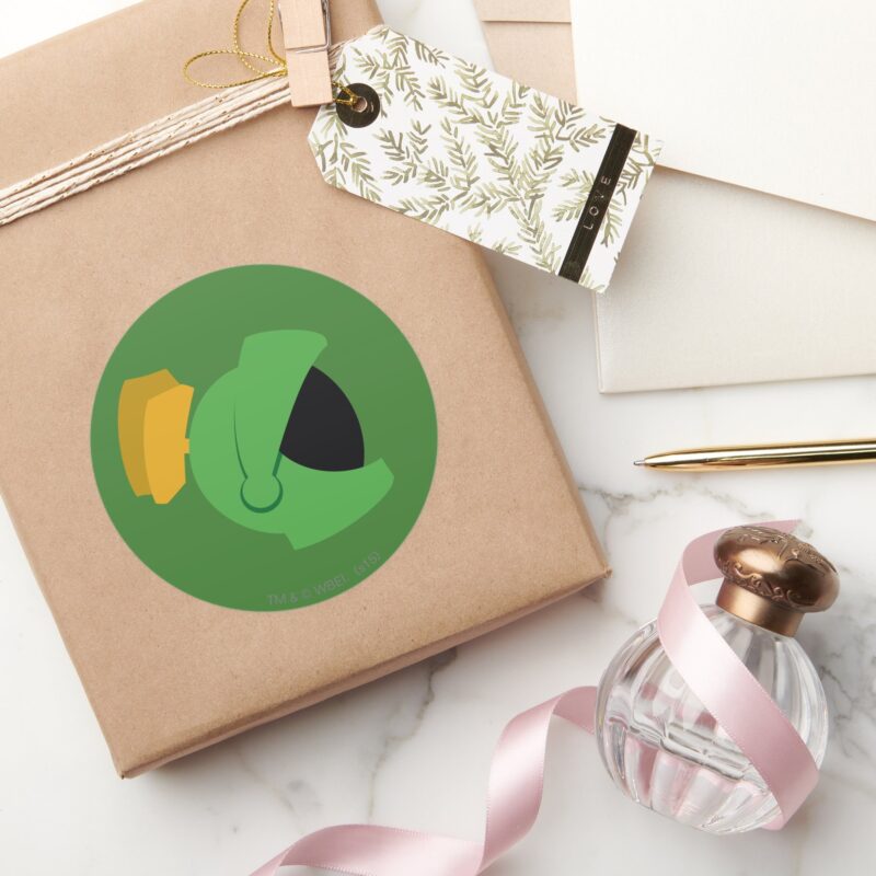 MARVIN THE MARTIAN™ Identity Classic Round Sticker vinyl sticker, waterproof durable collectible sticker for laptop, phone, bottle, bike, notebook, helmet, and accessories.