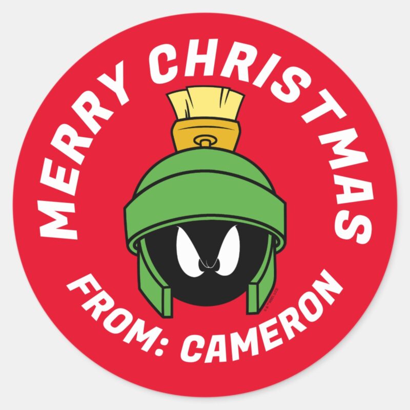 MARVIN THE MARTIAN™ Mad Merry Christmas Classic Round Sticker vinyl sticker, waterproof durable collectible sticker for laptop, phone, bottle, bike, notebook, helmet, and accessories.