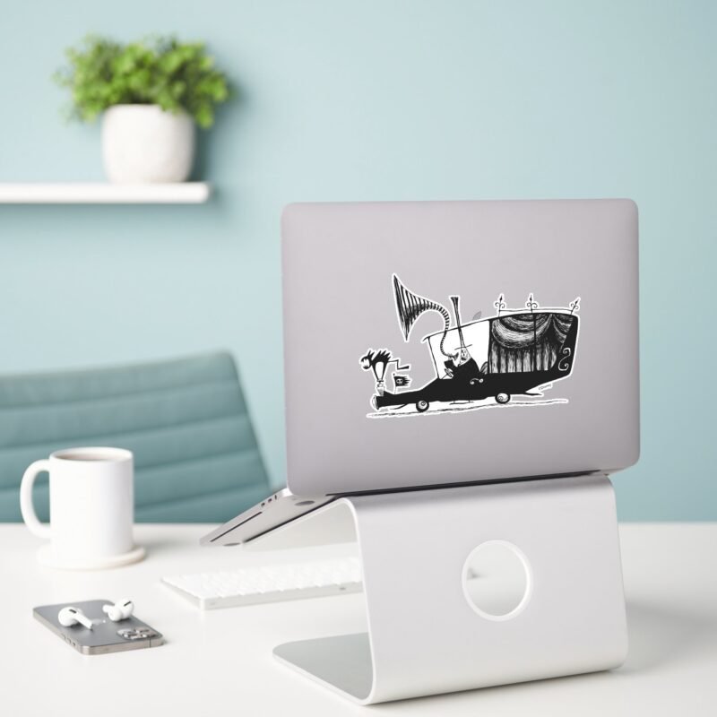 Mayor Of Halloween Town Driving Hearse Sticker vinyl sticker, waterproof durable collectible sticker for laptop, phone, bottle, bike, notebook, helmet, and accessories.
