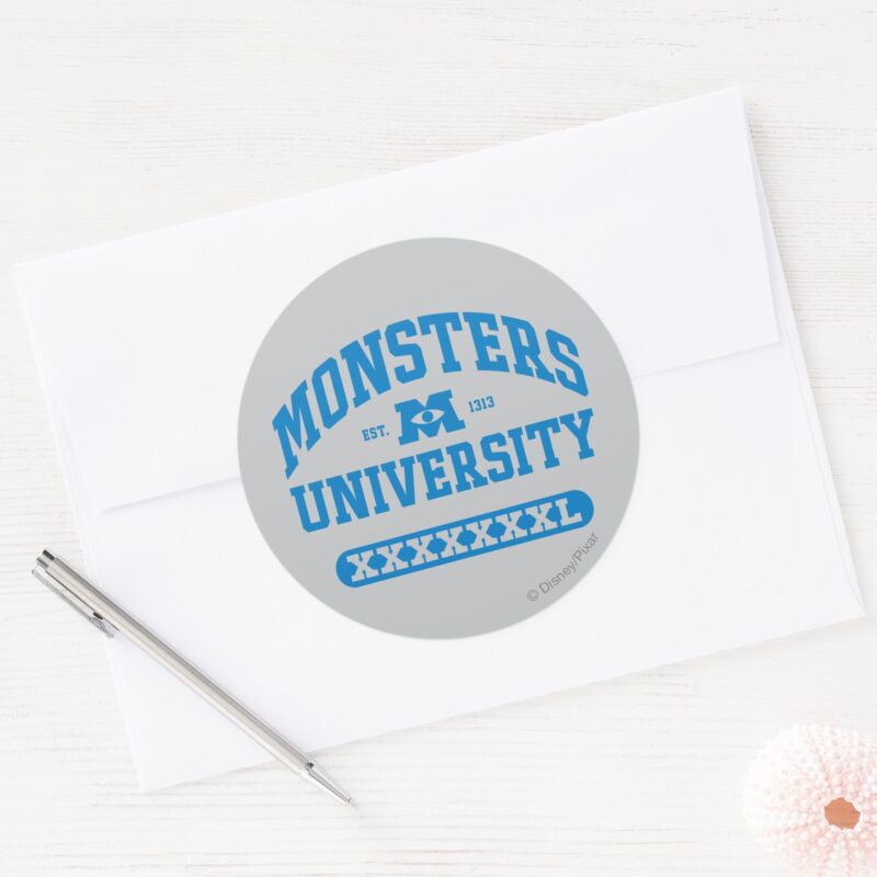 Monsters University Est. 1313 Classic Round Sticker vinyl sticker, waterproof durable collectible sticker for laptop, phone, bottle, bike, notebook, helmet, and accessories.