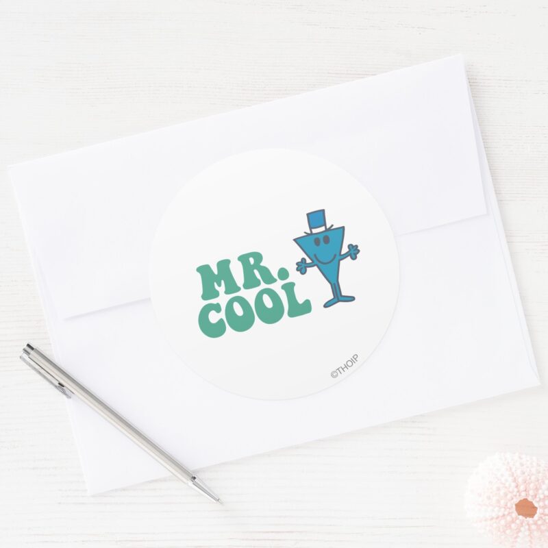 Mr. Cool Logo Design Classic Round Sticker vinyl sticker, waterproof durable collectible sticker for laptop, phone, bottle, bike, notebook, helmet, and accessories.