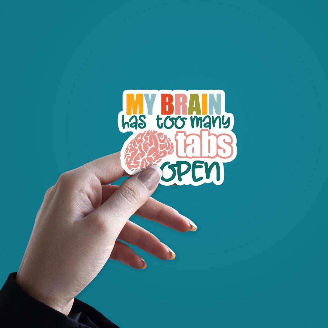 My Brain Has Too Many Tabs Open Sticker vinyl sticker, waterproof durable collectible sticker for laptop, phone, bottle, bike, notebook, helmet, and accessories.
