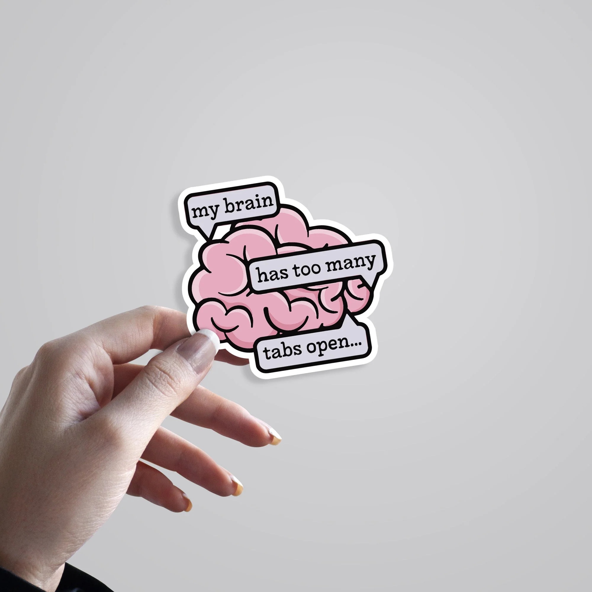 My Brain Has Too Many Tabs Open Witty Stickers vinyl sticker, waterproof durable collectible sticker for laptop, phone, bottle, bike, notebook, helmet, and accessories.