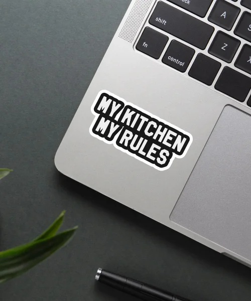 My Kitchen My Rules Sticker vinyl sticker, waterproof durable collectible sticker for laptop, phone, bottle, bike, notebook, helmet, and accessories.