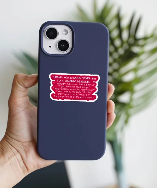 Never Say To A Graphic Designer vinyl sticker, waterproof durable collectible sticker for laptop, phone, bottle, bike, notebook, helmet, and accessories.