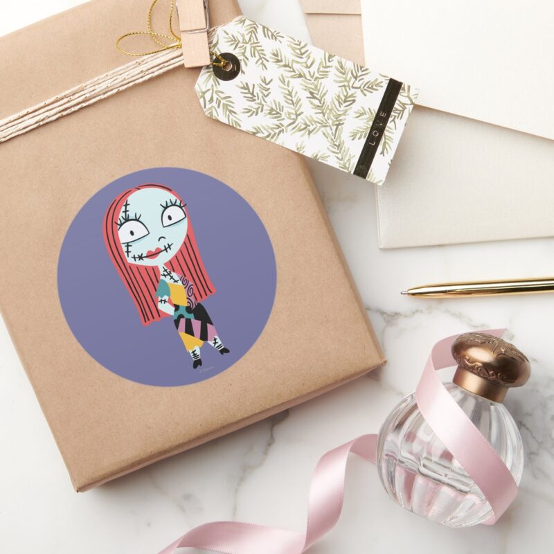 Nightmar Before Christmas Cute Sally Classic Round Sticker vinyl sticker, waterproof durable collectible sticker for laptop, phone, bottle, bike, notebook, helmet, and accessories.
