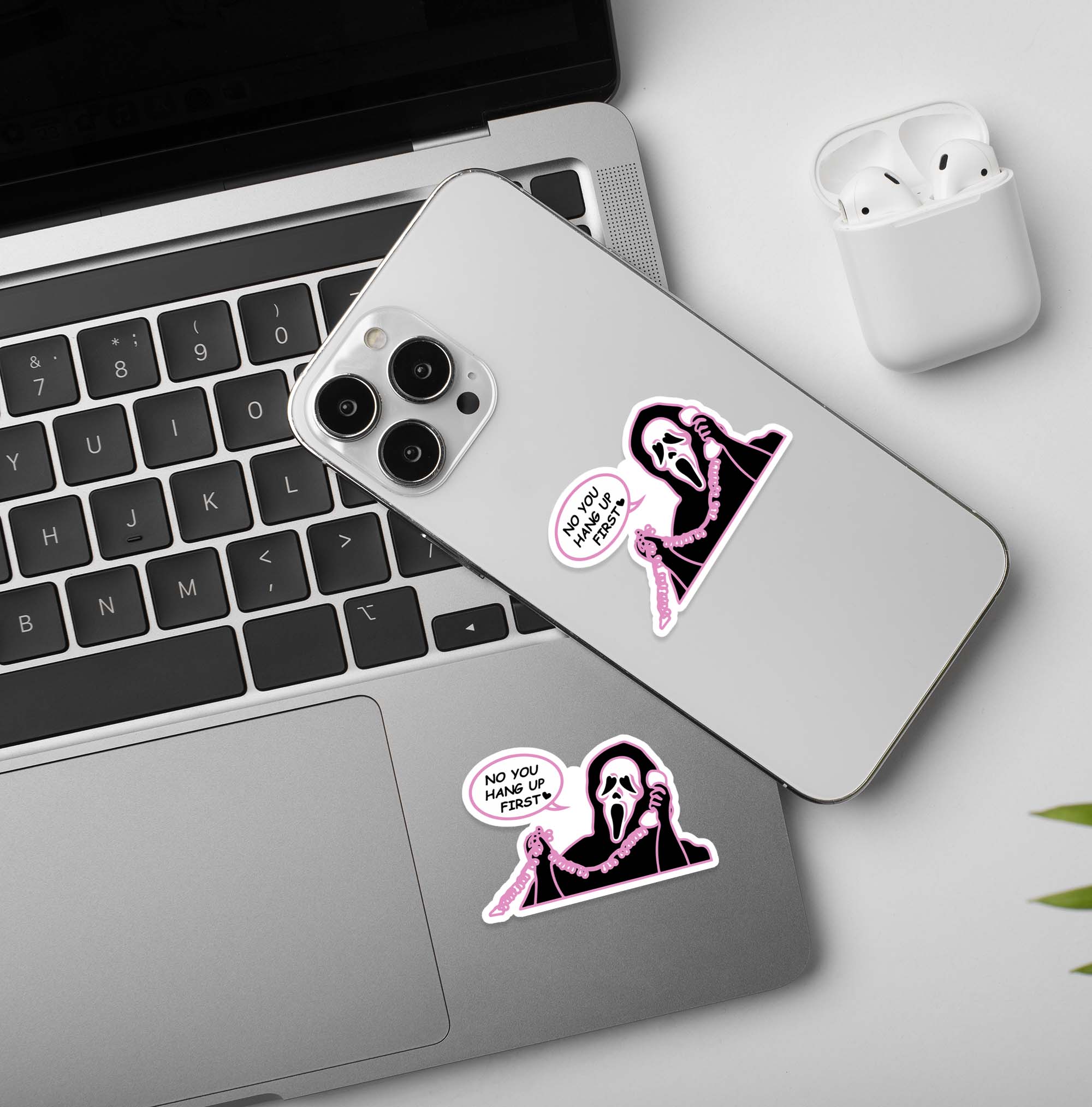 No You Hang Up First vinyl sticker, waterproof durable collectible sticker for laptop, phone, bottle, bike, notebook, helmet, and accessories.