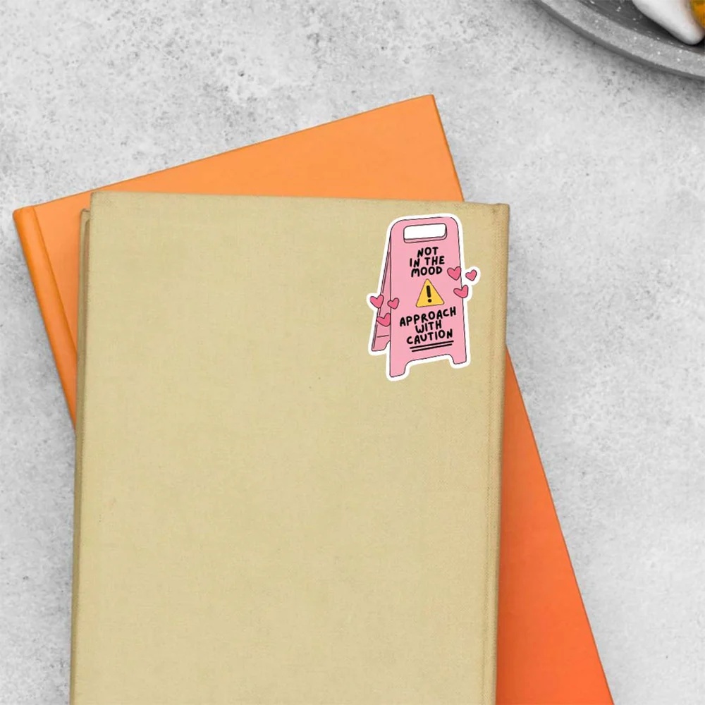 Not In The Mood Approach With Caution Witty Stickers vinyl sticker, waterproof durable collectible sticker for laptop, phone, bottle, bike, notebook, helmet, and accessories.