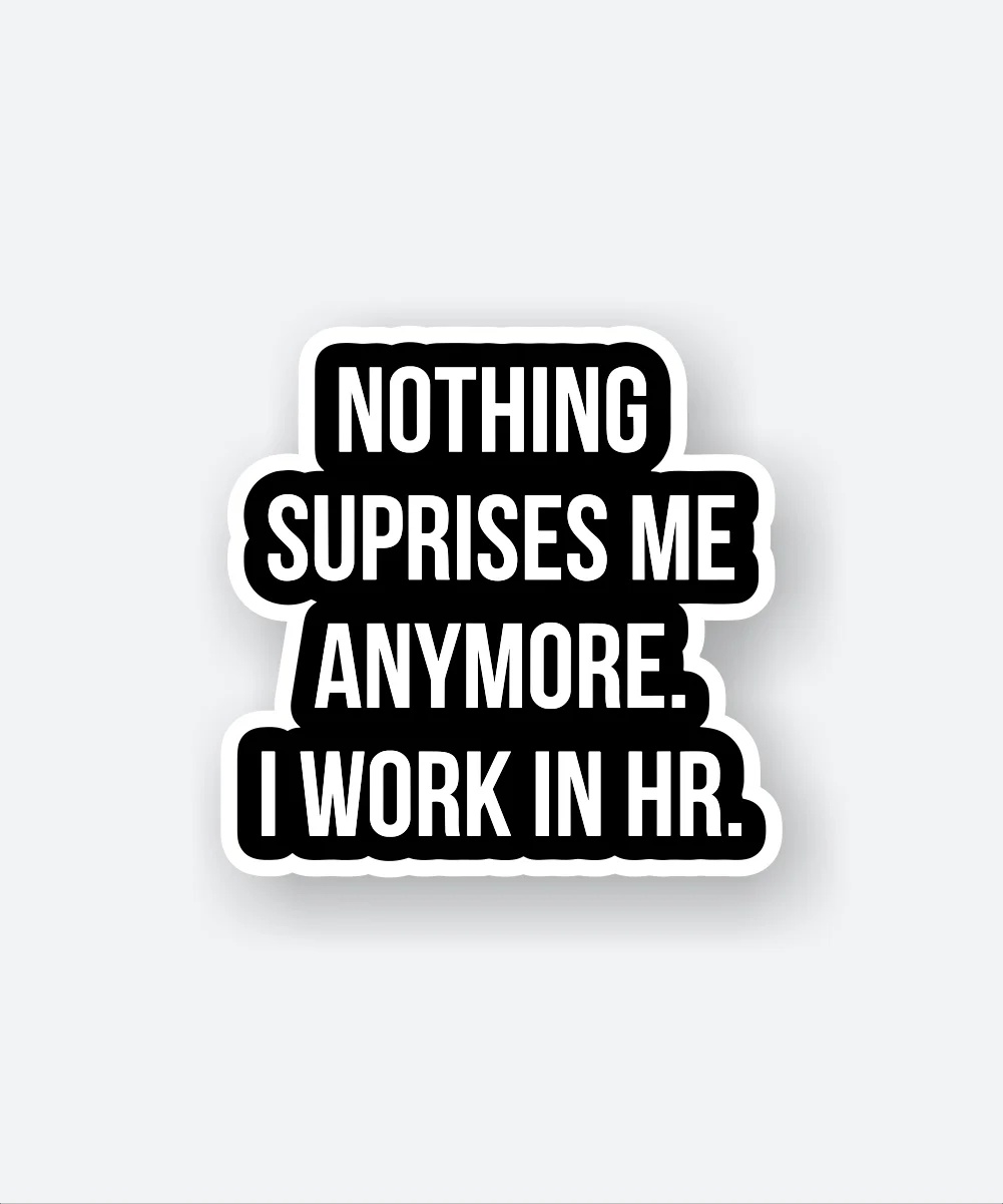 Nothing Suprises Me Anymore. HR Sticker vinyl sticker, waterproof durable collectible sticker for laptop, phone, bottle, bike, notebook, helmet, and accessories.