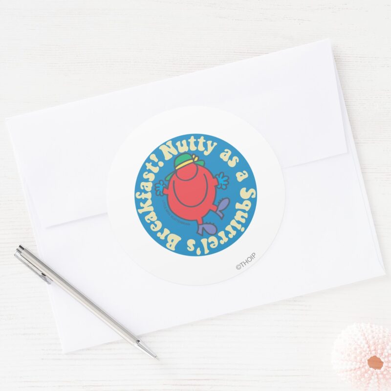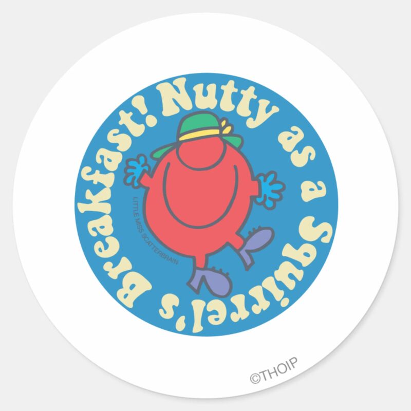 Nutty As A Squirrels Breakfast Classic Round Sticker vinyl sticker, waterproof durable collectible sticker for laptop, phone, bottle, bike, notebook, helmet, and accessories.