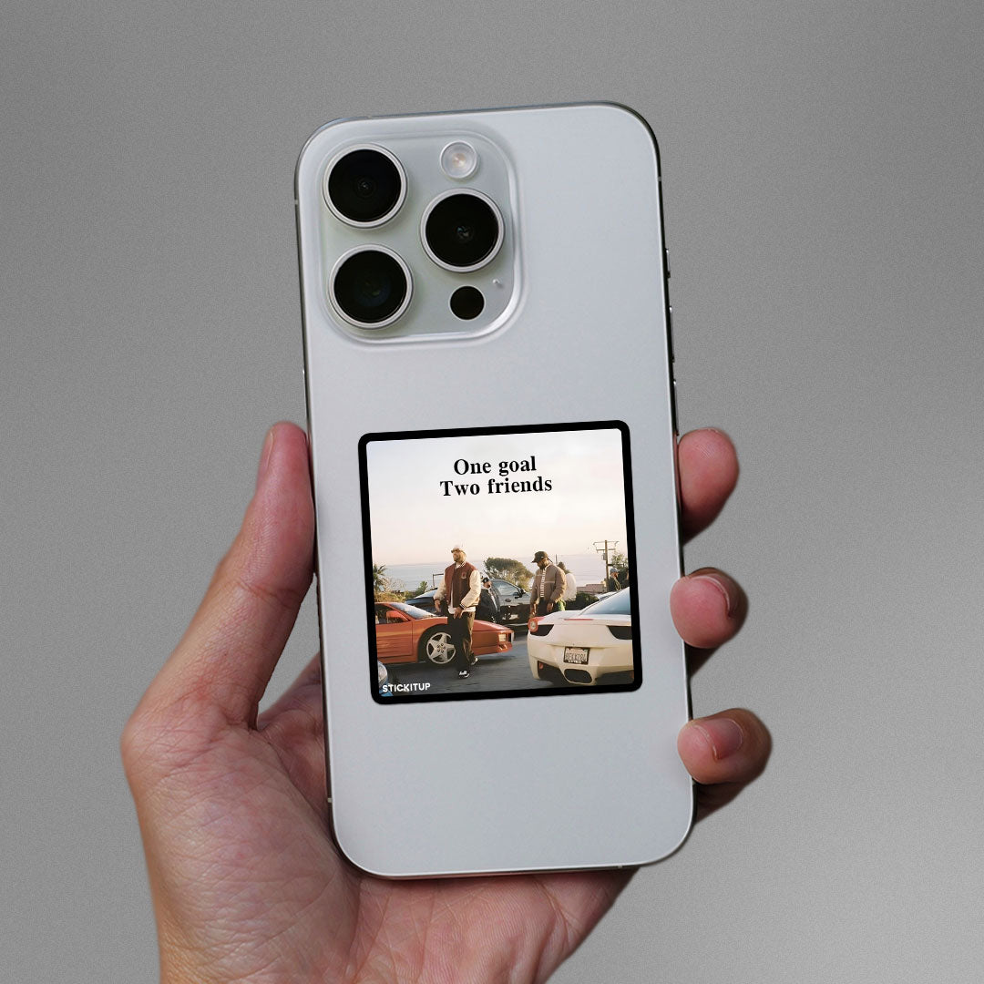 One Goal Two Friends Sticker vinyl sticker, waterproof durable collectible sticker for laptop, phone, bottle, bike, notebook, helmet, and accessories.