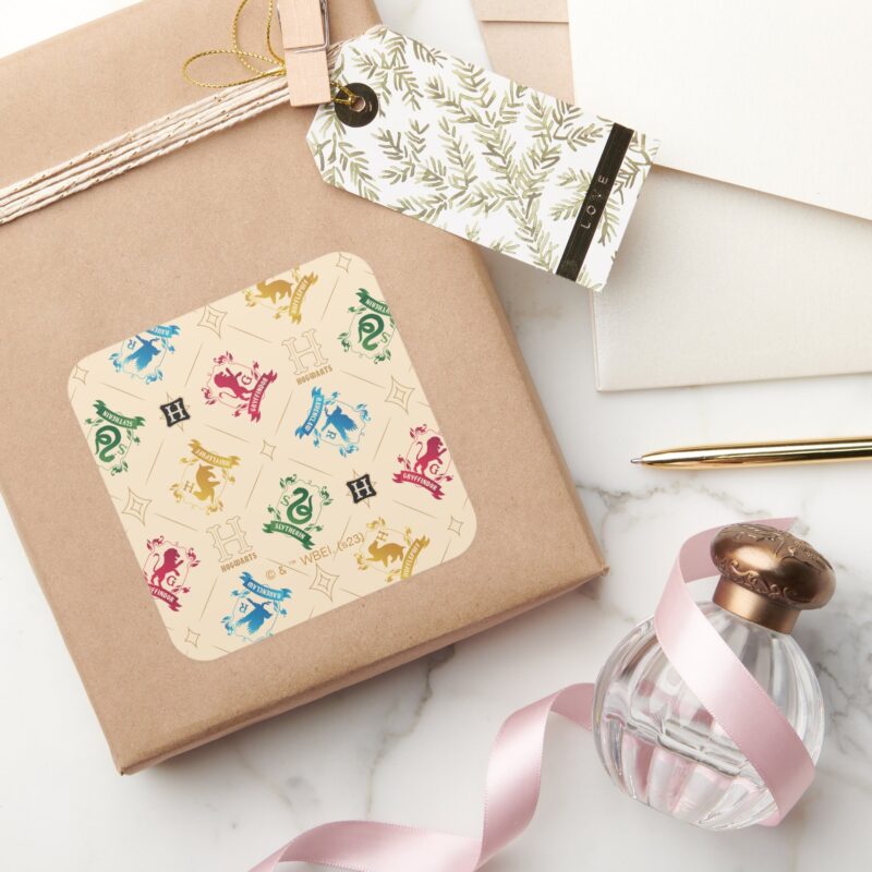 Ornate HOGWARTS™ House Crests Pattern Square Sticker