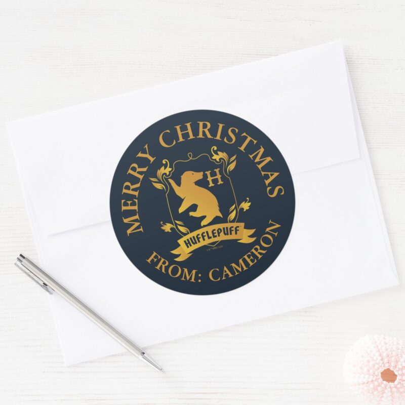 Ornate HUFFLEPUFF™ House Crest Merry Christmas Classic Round Sticker