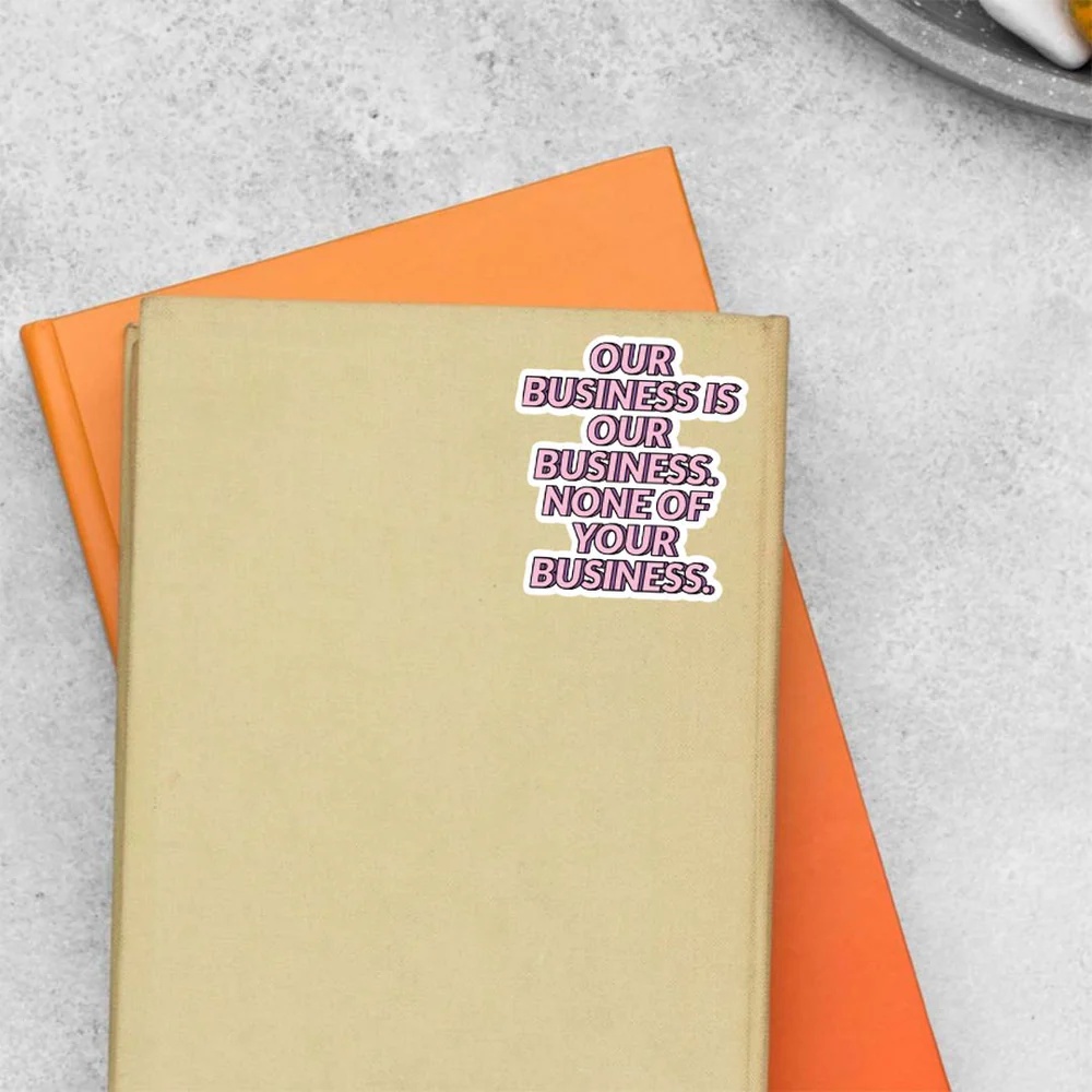 Our Business Is Our Business Witty Stickers vinyl sticker, waterproof durable collectible sticker for laptop, phone, bottle, bike, notebook, helmet, and accessories.