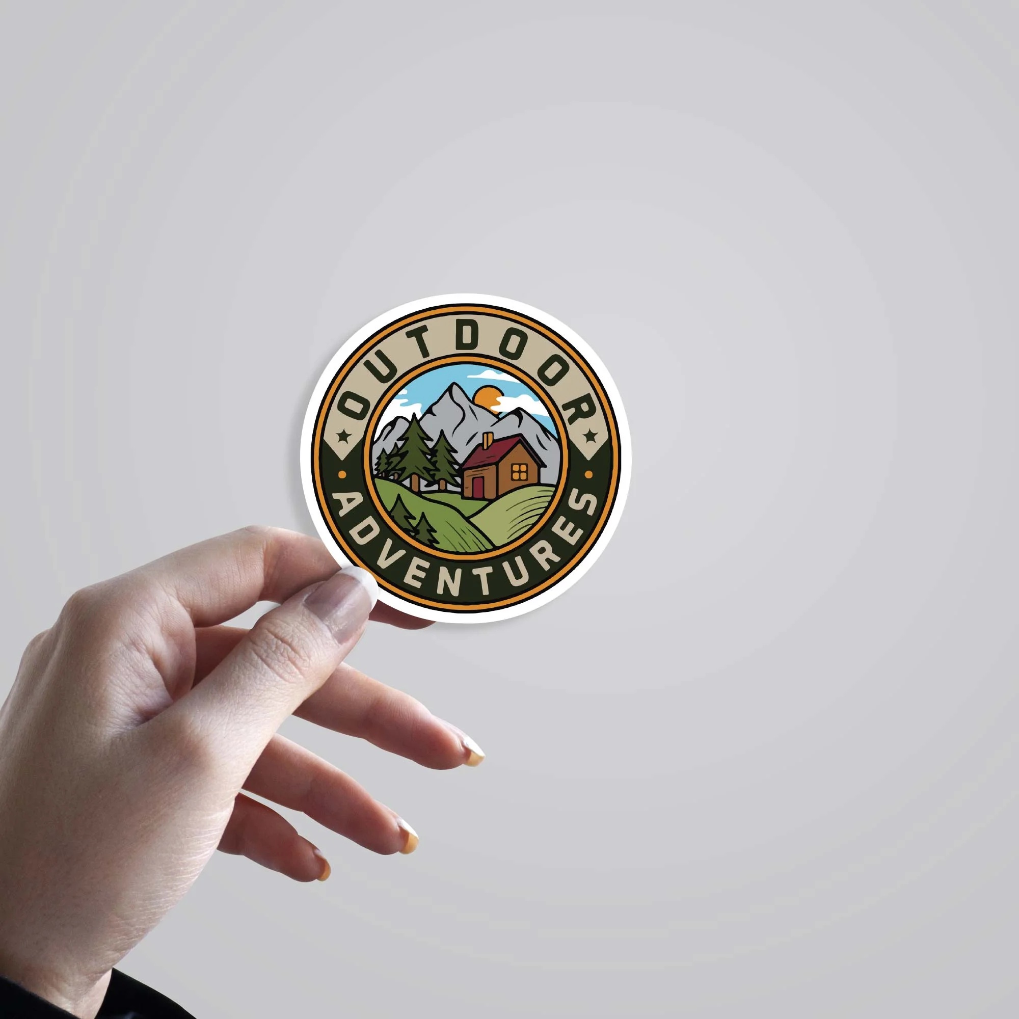 Outdoor Adventure Travels Stickers vinyl sticker, waterproof durable collectible sticker for laptop, phone, bottle, bike, notebook, helmet, and accessories.