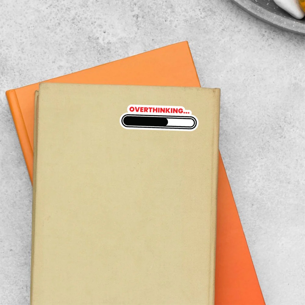 Overthinking Witty Stickers vinyl sticker, waterproof durable collectible sticker for laptop, phone, bottle, bike, notebook, helmet, and accessories.