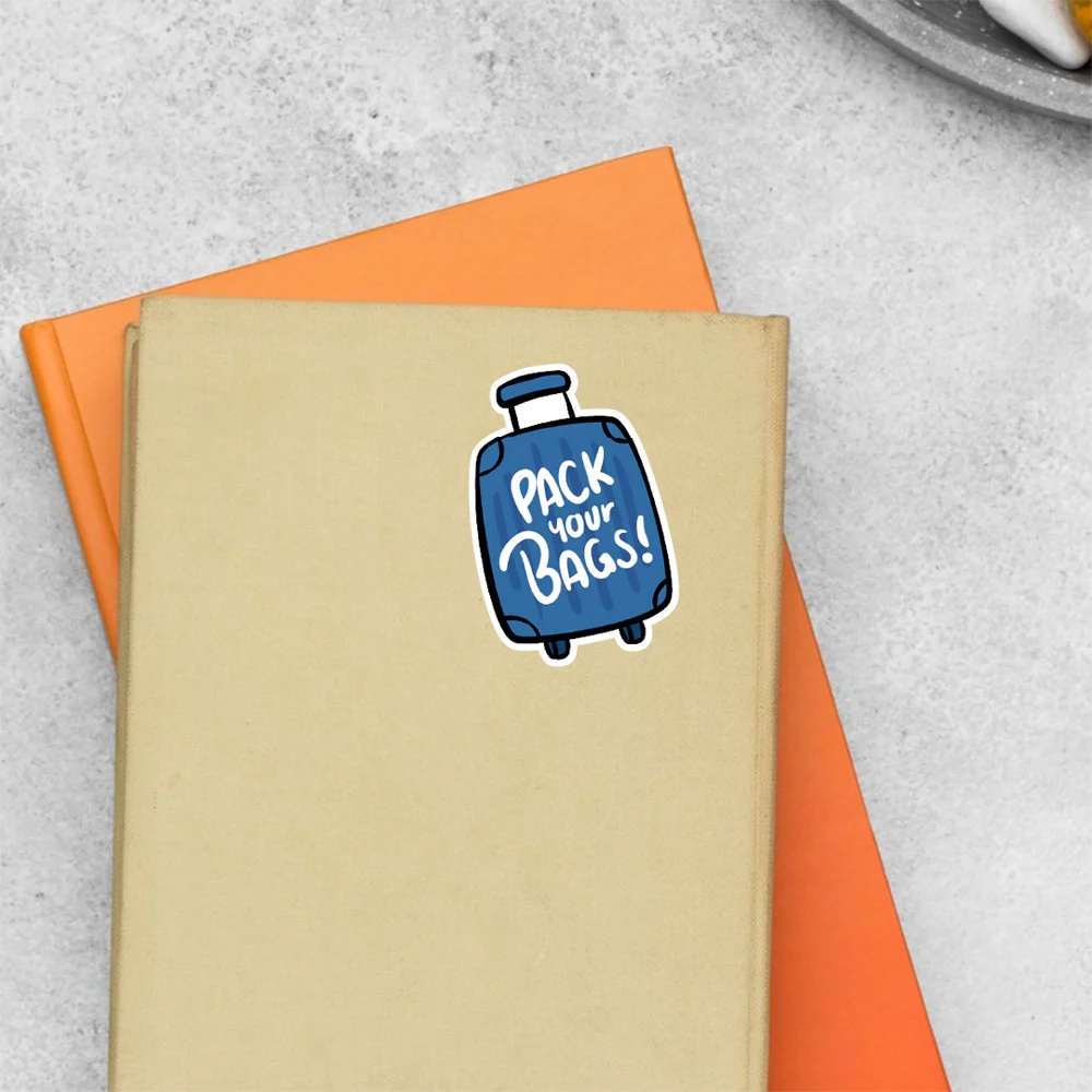 Pack Your Bags Travels Stickers vinyl sticker, waterproof durable collectible sticker for laptop, phone, bottle, bike, notebook, helmet, and accessories.