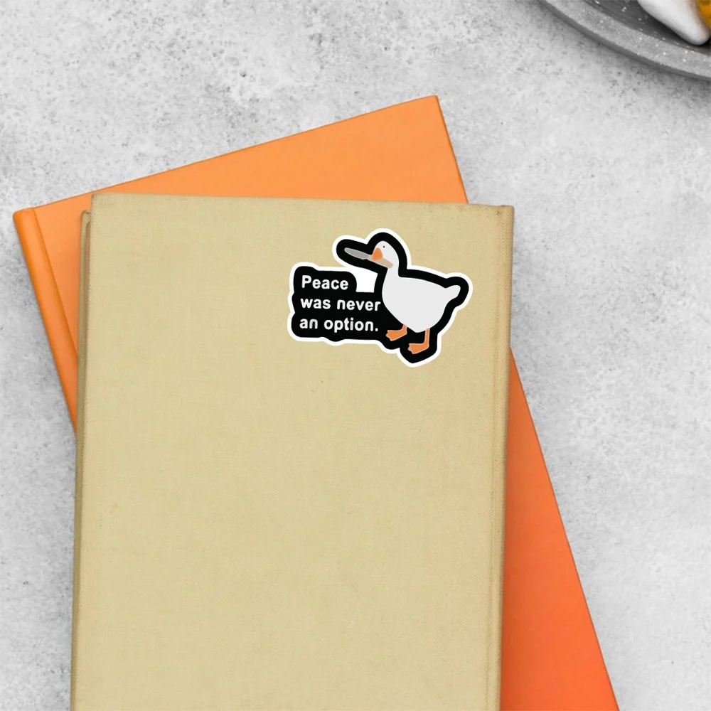 Peace Was Never An Option Witty Stickers vinyl sticker, waterproof durable collectible sticker for laptop, phone, bottle, bike, notebook, helmet, and accessories.