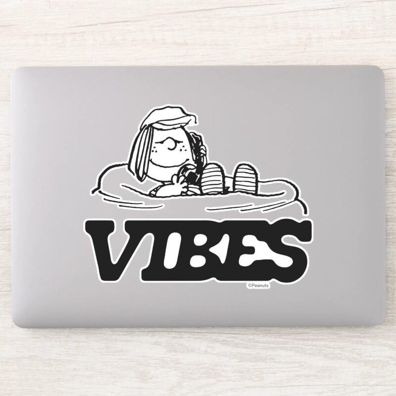 Peanuts Peppermint Patty Vibes Sticker vinyl sticker, waterproof durable collectible sticker for laptop, phone, bottle, bike, notebook, helmet, and accessories.