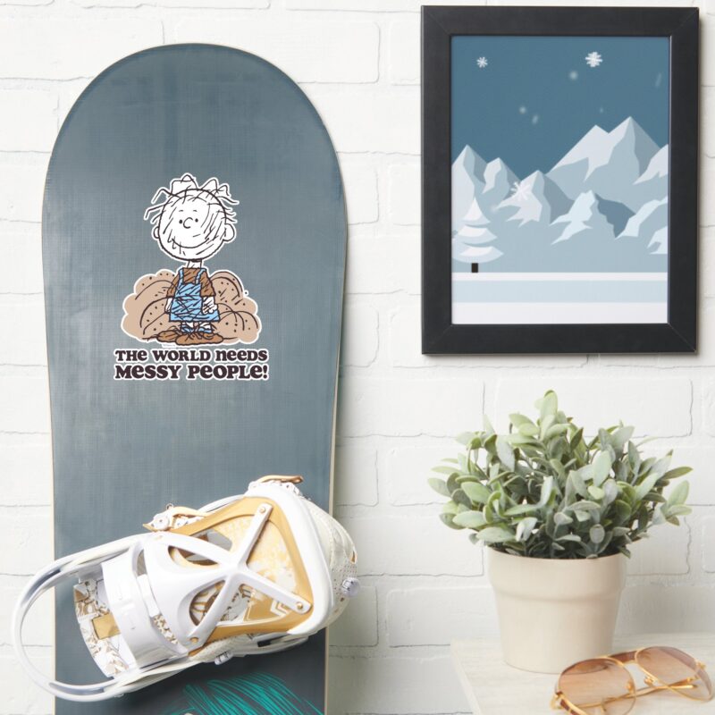 Peanuts Pigpen The World Needs Messy People Sticker vinyl sticker, waterproof durable collectible sticker for laptop, phone, bottle, bike, notebook, helmet, and accessories.