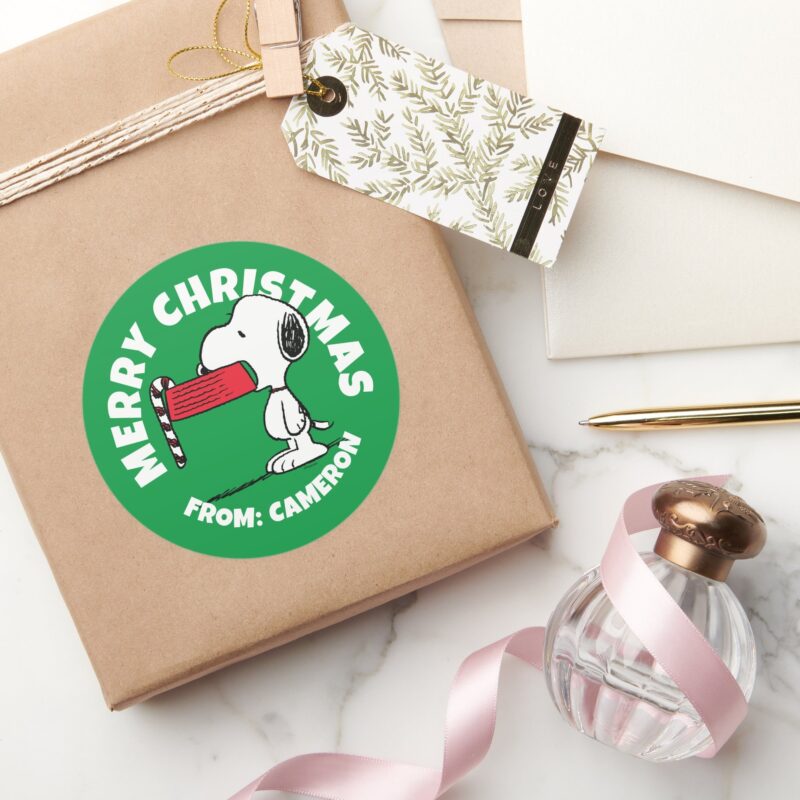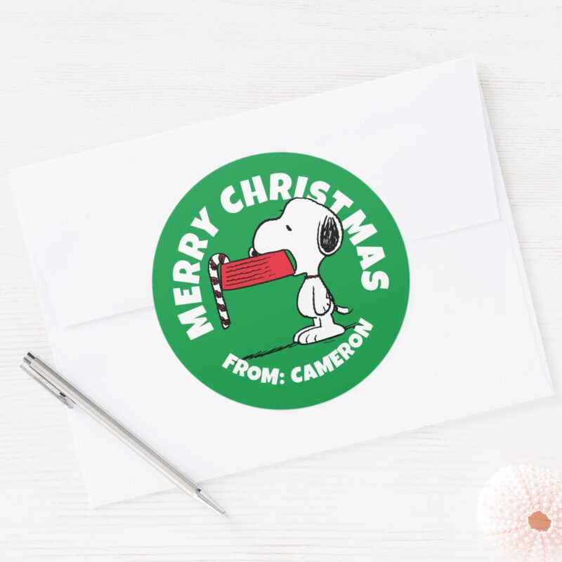 Be the first to review “Peanuts Snoopy Candy Cane Food Dish Classic Round Sticker”