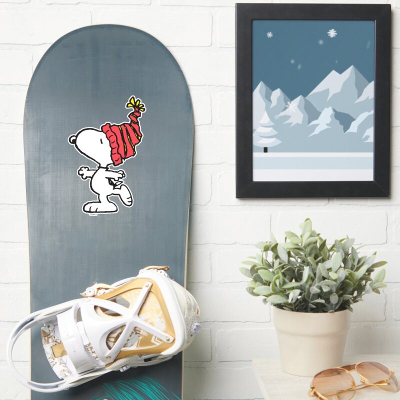 Peanuts Snoopy Winter Beanie Cap Sticker vinyl sticker, waterproof durable collectible sticker for laptop, phone, bottle, bike, notebook, helmet, and accessories.