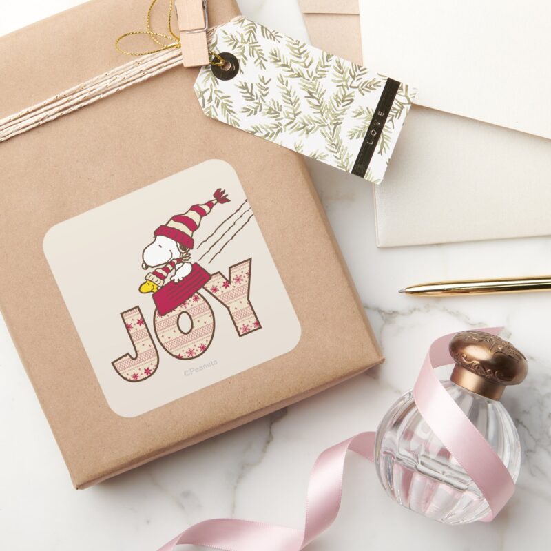 Peanuts Snoopy Woodstock Joy Sled Ride Square Sticker