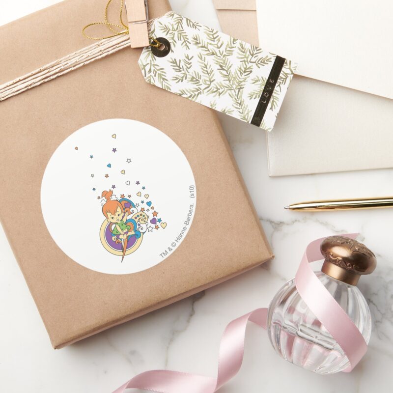 PEBBLES™ In The Stars � Classic Round Sticker vinyl sticker, waterproof durable collectible sticker for laptop, phone, bottle, bike, notebook, helmet, and accessories.