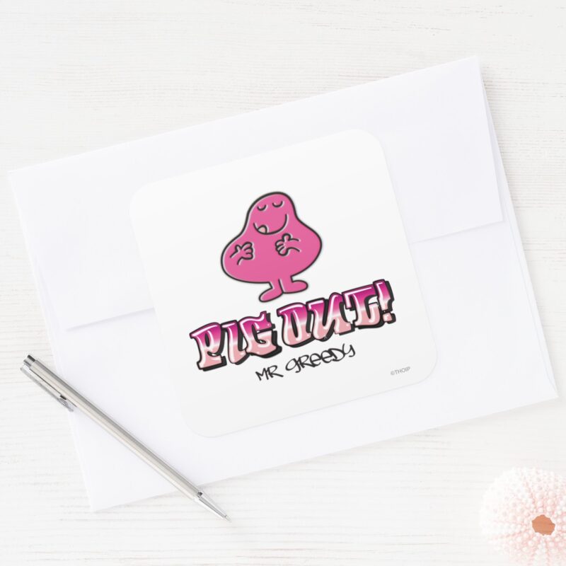 Pig Out Square Sticker vinyl sticker, waterproof durable collectible sticker for laptop, phone, bottle, bike, notebook, helmet, and accessories.