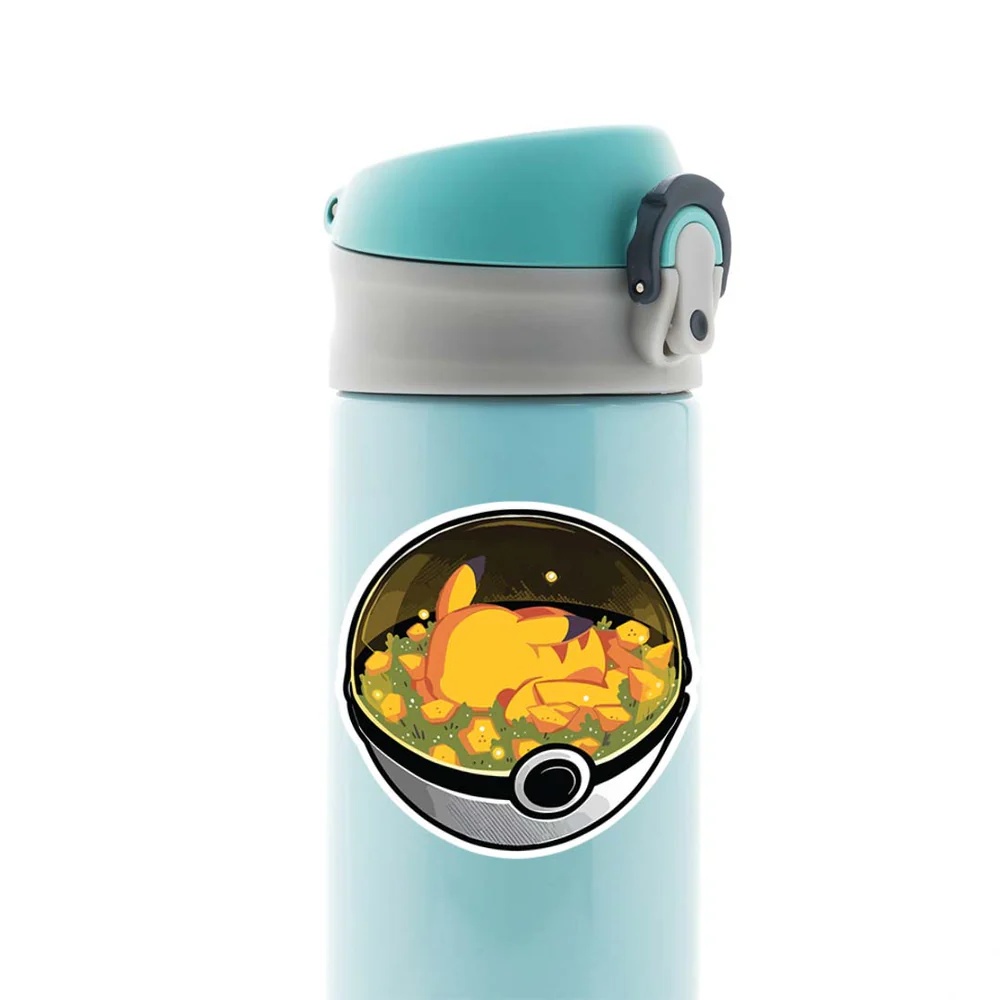 Pikachu In Yellow Field Pokeball Anime Stickers vinyl sticker, waterproof durable collectible sticker for laptop, phone, bottle, bike, notebook, helmet, and accessories.