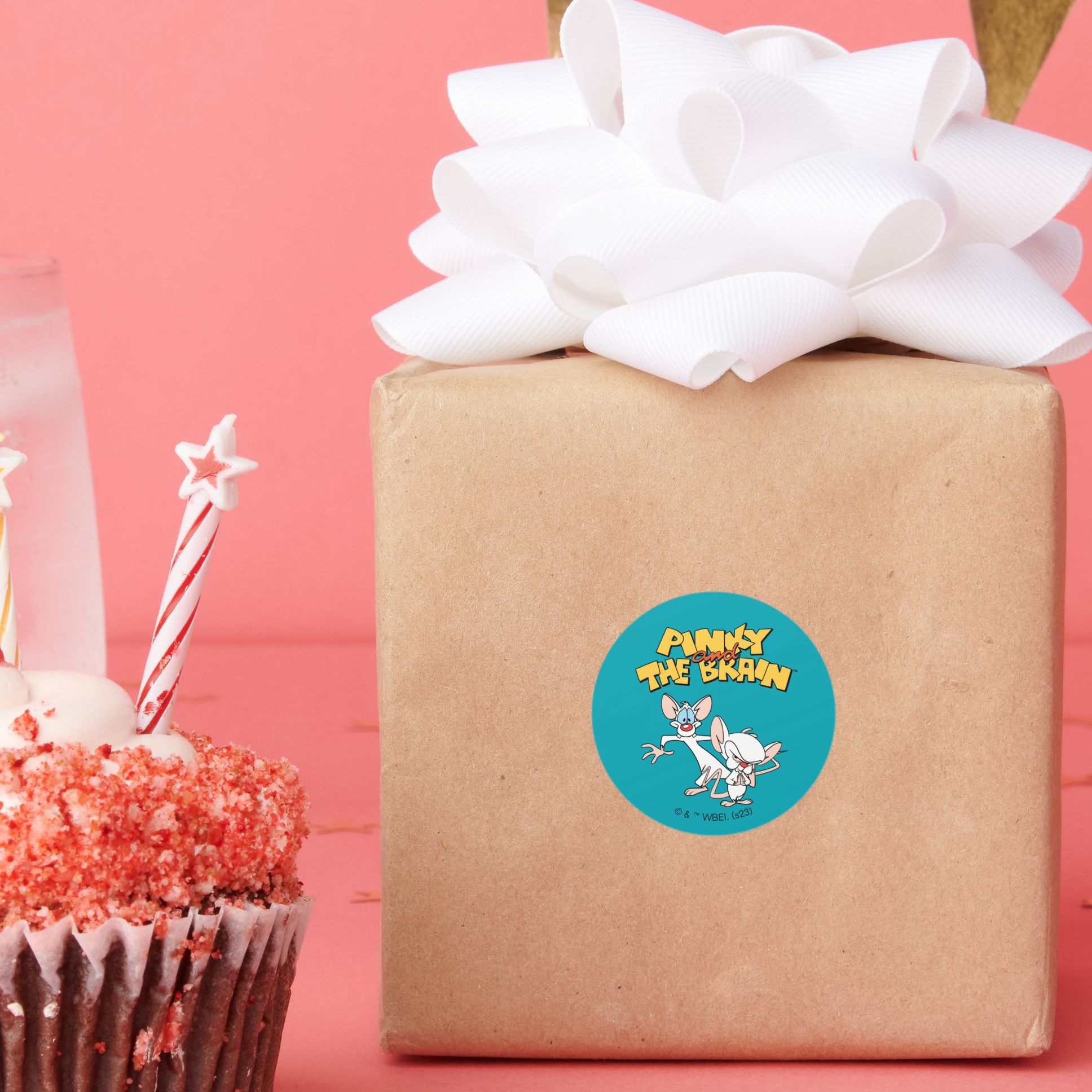 Pinky And The Brain Show Logo Classic Round Sticker vinyl sticker, waterproof durable collectible sticker for laptop, phone, bottle, bike, notebook, helmet, and accessories.