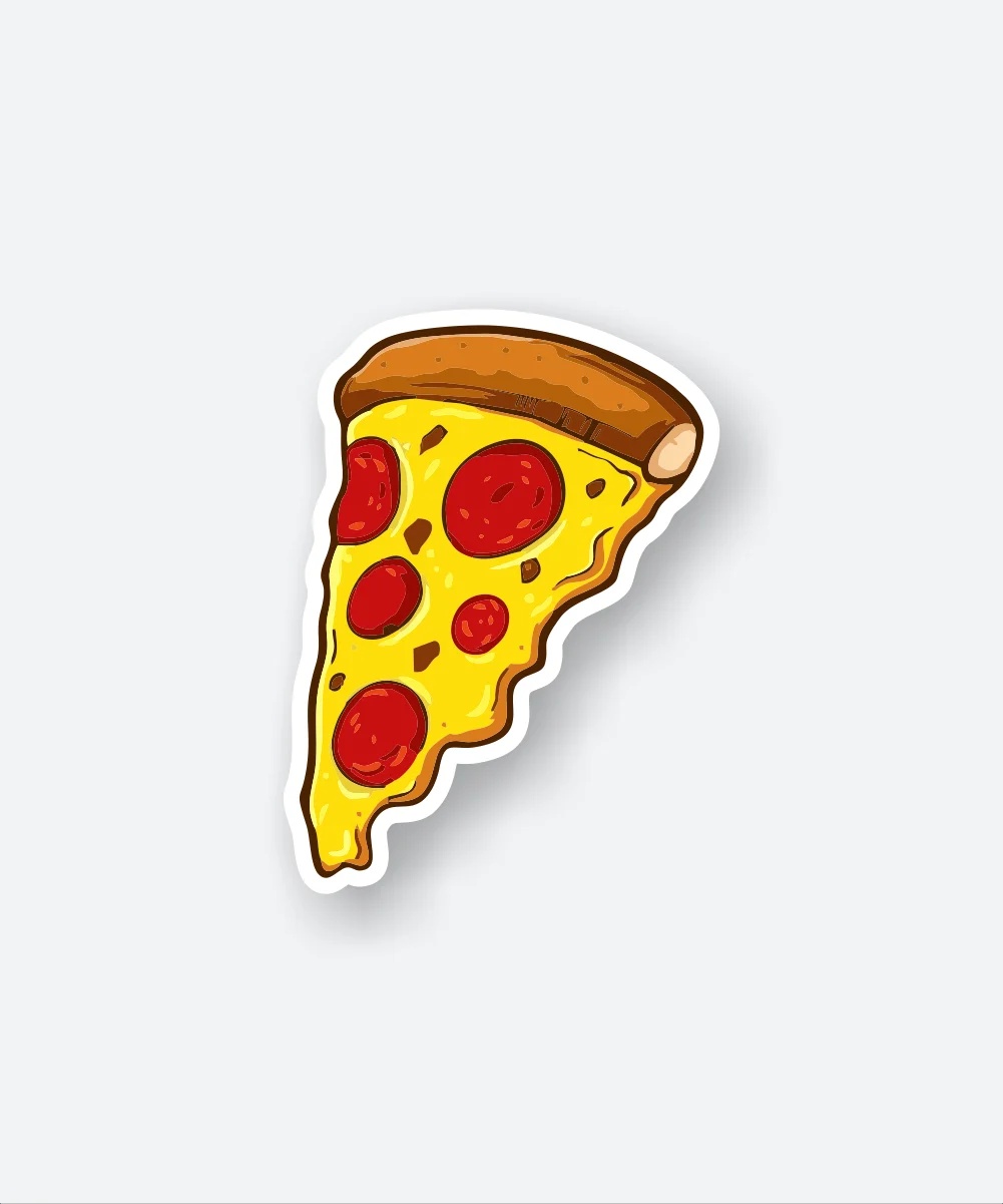 Pizza Slice vinyl sticker, waterproof durable collectible sticker for laptop, phone, bottle, bike, notebook, helmet, and accessories.