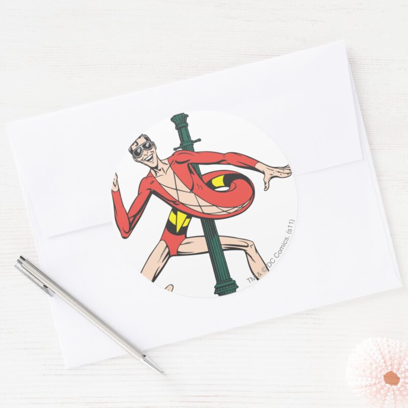 Plastic Man Wraps Streetlamp Classic Round Sticker vinyl sticker, waterproof durable collectible sticker for laptop, phone, bottle, bike, notebook, helmet, and accessories.