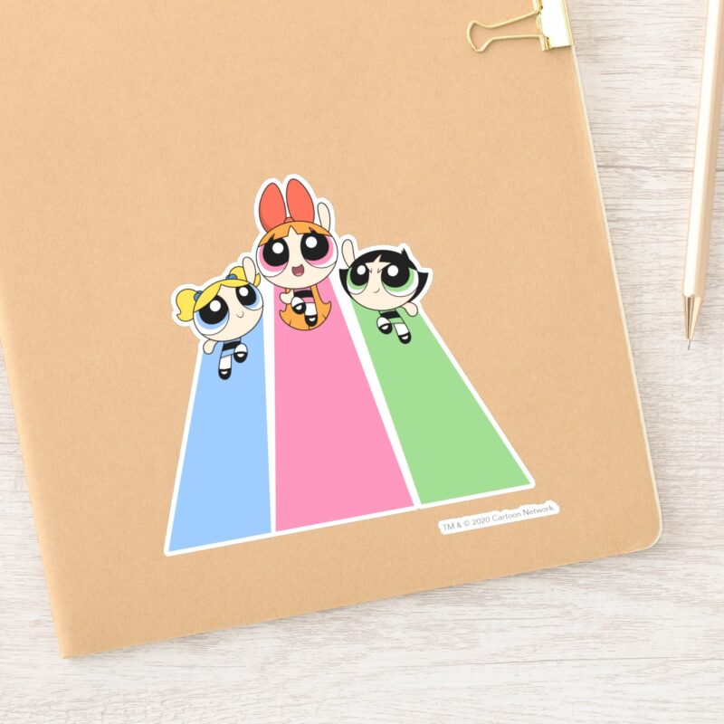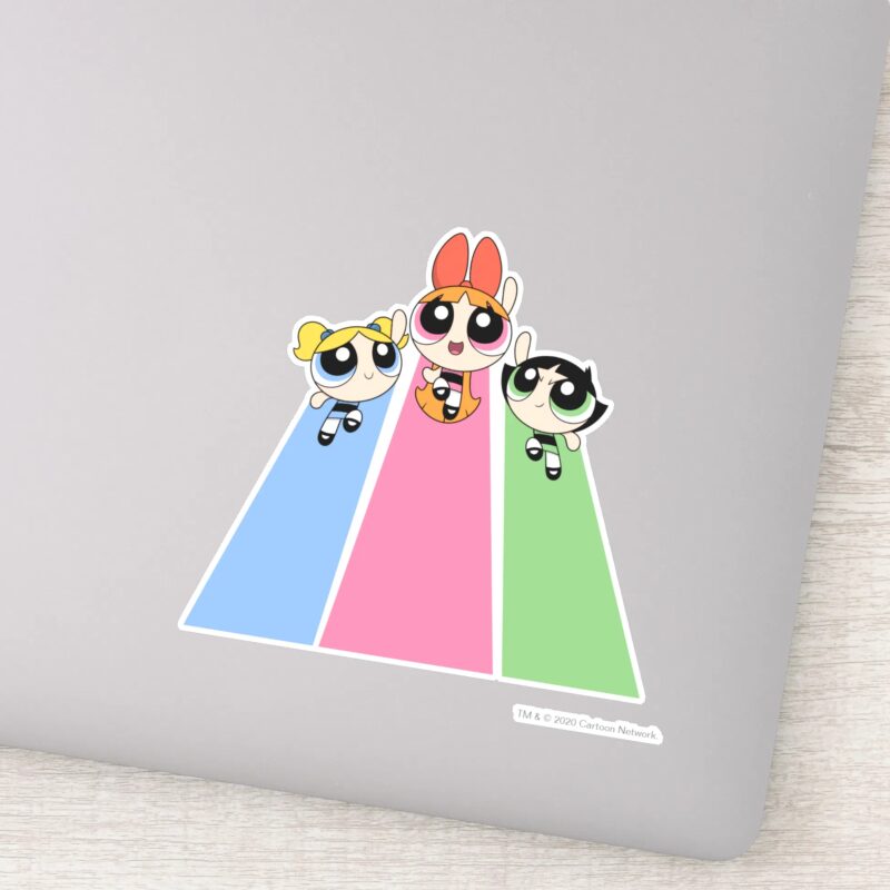 Powerpuff Girls Fly High Sticker vinyl sticker, waterproof durable collectible sticker for laptop, phone, bottle, bike, notebook, helmet, and accessories.