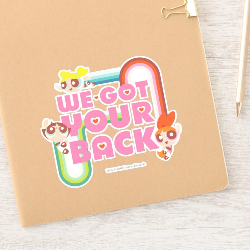 Powerpuff Girls We Got Your Back Sticker vinyl sticker, waterproof durable collectible sticker for laptop, phone, bottle, bike, notebook, helmet, and accessories.