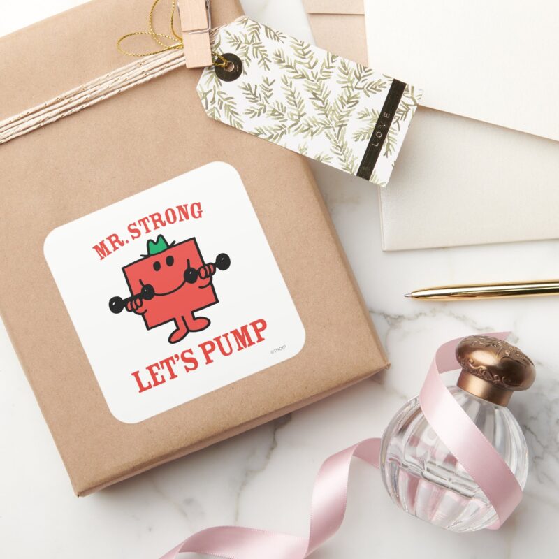 Pumping Iron With Mr. Strong Square Sticker vinyl sticker, waterproof durable collectible sticker for laptop, phone, bottle, bike, notebook, helmet, and accessories.